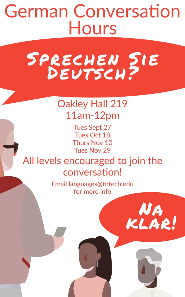 As advisor of the university’s German Club, I organized and promoted regular conversation hours to give students a relaxed, supportive space to practice their language skills outside the classroom. I designed these visually striking posters to catch students’ attention and make the events feel welcoming and engaging—helping transform language practice into a social highlight and strengthening the sense of community among language learners.